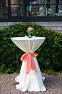 30 inch cruiesr table with black stretch tablecloth and 2 black folding bar chairs